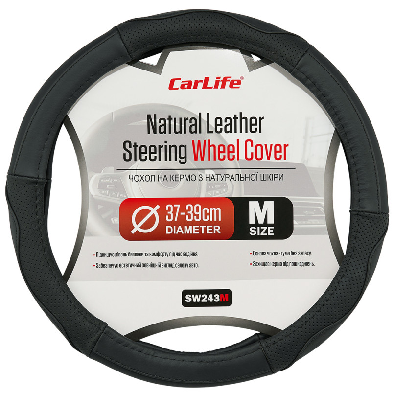 Опис: CARLIFE CARLIFE Чохол на кермо Carlife 37-39см, шкіра, чорний