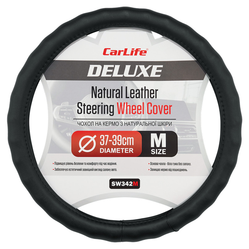 Опис: CARLIFE CARLIFE Чохол на кермо Carlife 37 - 39см, шкіра, чорний, біла гума, один шов