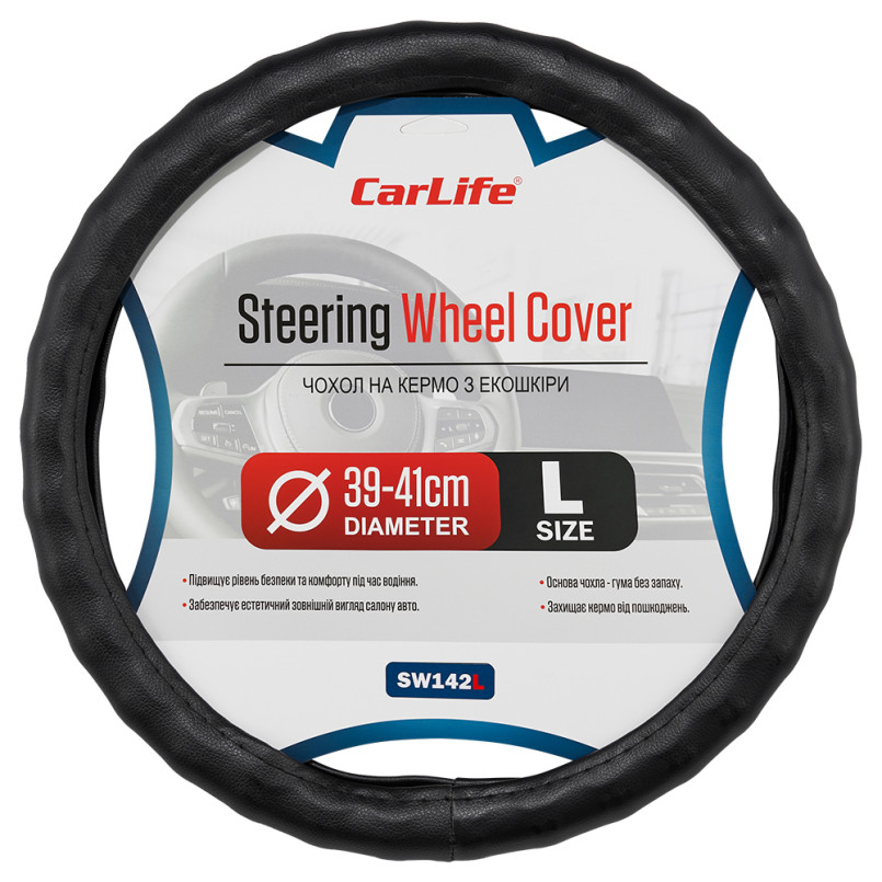 Опис: CARLIFE CARLIFE Чохол на кермо Carlife 39 - 41см, екошкіра, чорний, один шов