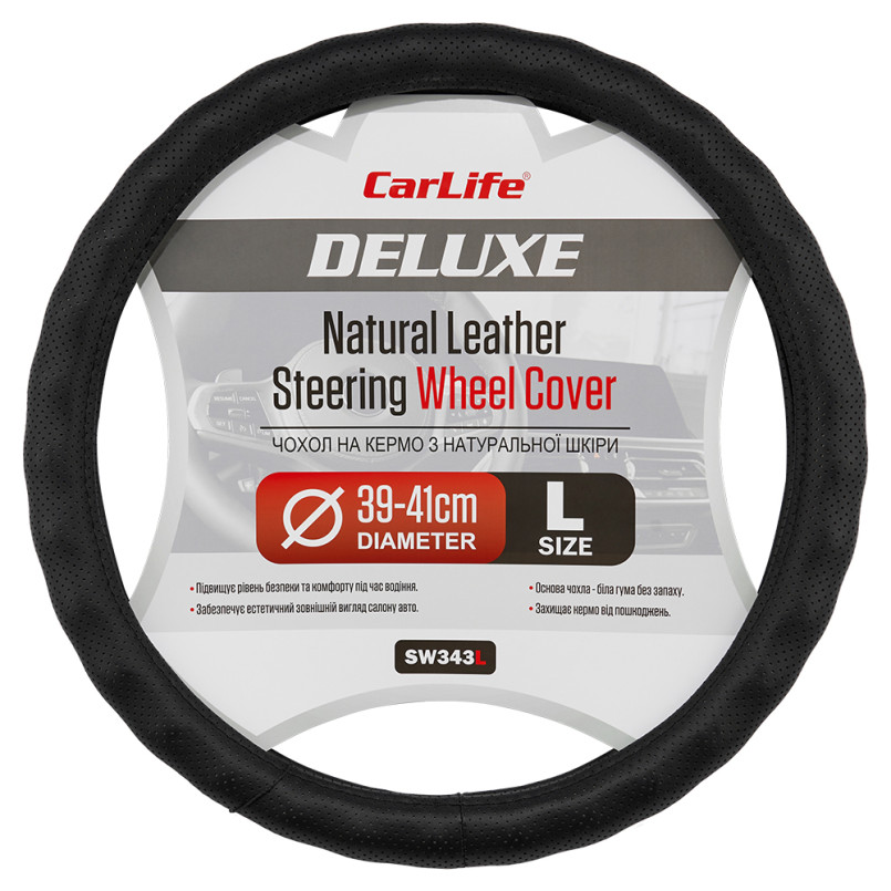 Опис: CARLIFE CARLIFE Чохол на кермо Carlife 39-41см, шкіра, чорний, біла гума, один шов, перфорований