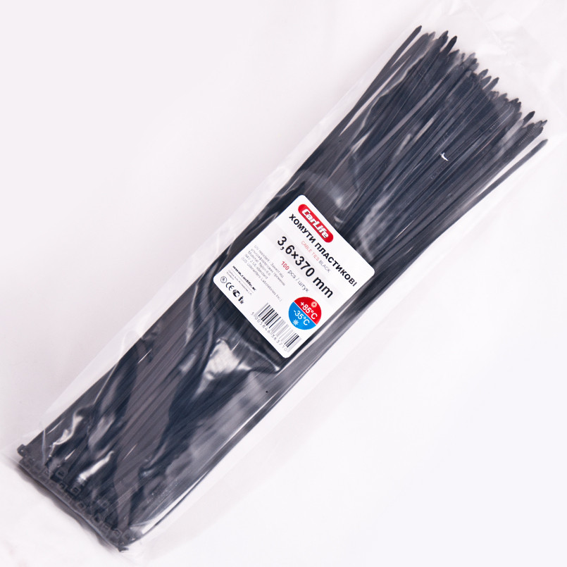 Опис: CARLIFE CARLIFE Хомути пластикові чорні 3,6x370 (100шт.)