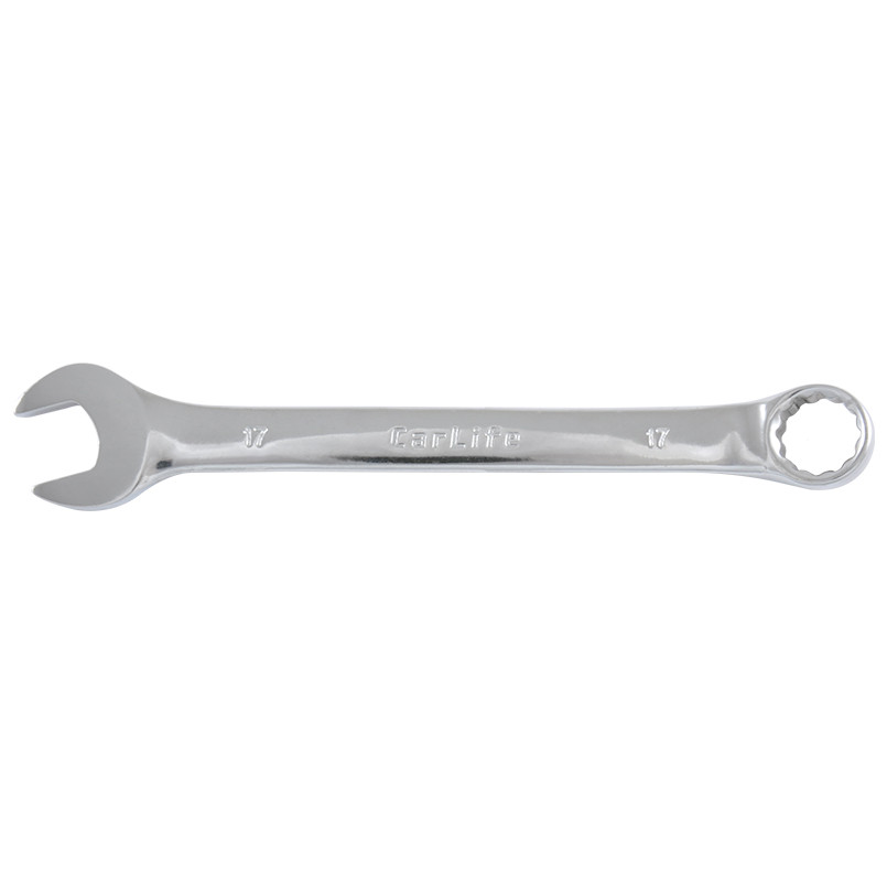 Опис: Ключ комбінований CARLIFE CR-V, 17 мм, хромово-ванадієва сталь, нікель-хромоване покриття, кільце під кутом 15° DIN 3113, без тримача