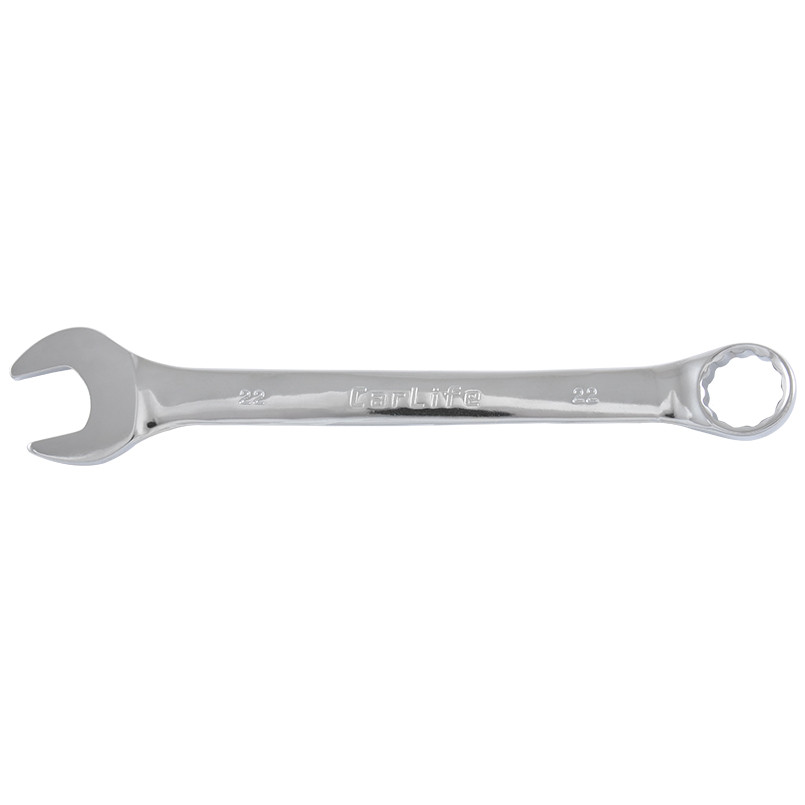 Опис: Ключ комбінований CARLIFE CR-V, 22 мм, хромово-ванадієва сталь, нікель-хромоване покриття, кільце під кутом 15° DIN 3113, без тримача