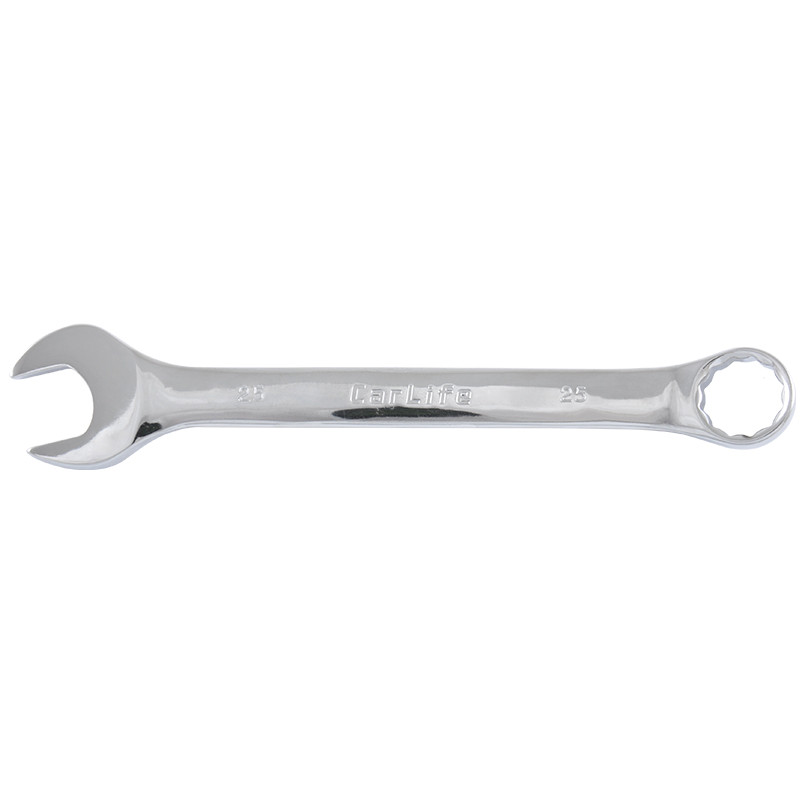 Опис: Ключ комбінований CARLIFE CR-V, 25 мм, хромово-ванадієва сталь, нікель-хромоване покриття, кільце під кутом 15° DIN 3113, без тримача