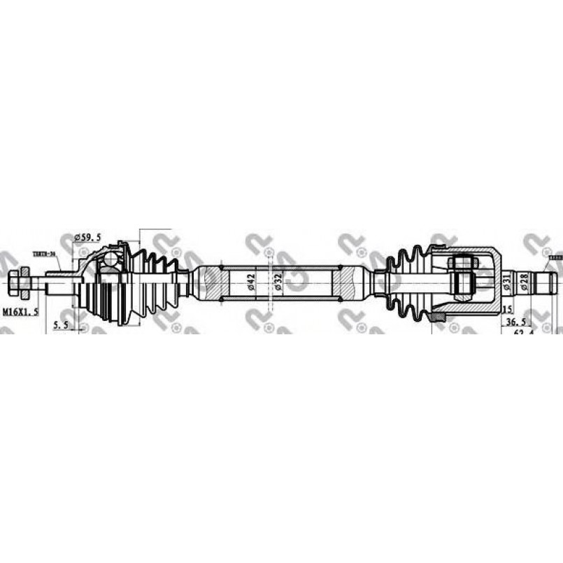 Опис: AUDI A3, SKODA Octavia (1Z_), VW Golf V/VI/Passat/Touran 1.6/2.0FSI 03-15 Right (36 26 59.5mm 884mm) (24487 Spidan)