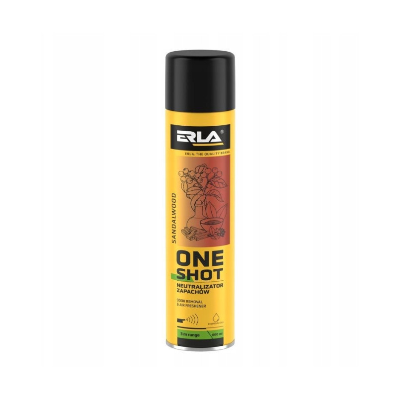 Опис: ONE SHOT – нейтралізатор і освіжувач повітря в одному. Швидкий і ефективний спосіб нейтралізації неприємних запахів і ароматизації приміщень. Ідеально підходить для кризових ситуацій. Не маскує, а усуває частинки неприємних запахів. Він відмінно впорається з неприємним запахом сечі, гару, сигаретного диму, затхлості або поту. Спеціальний аплікатор забезпечує діапазон нанесення 3 м, що робить продукт ідеальним для великих приміщень, таких як спортивні зали, готелі, конференц-зали, магазини, коридори та санвузли. Ароматні композиції, багаті ефірними оліями, гарантують інтенсивний і природний аромат, підвищуючи комфорт людей, які перебувають у оновленому приміщенні. SANDALWOOD - поєднання аромату сандалового дерева з гвоздиковою олією сприяє тому, що запах не дратує, а позитивно впливає на настрій. Спосіб застосування: перед застосуванням збовтати. Натисніть на курок протягом 1 секунди. Не розпилюйте безпосередньо або з невеликої відстані на стіни, шафи або м'які меблі через ризик утворення плям. За потреби повторіть дію.