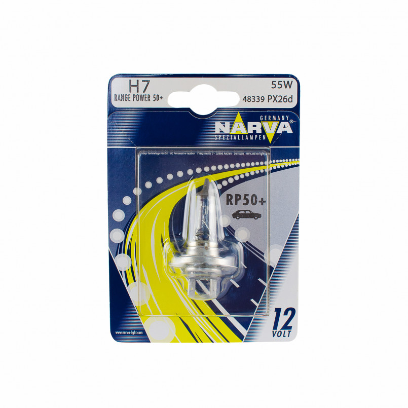 Опис: Narva 483394000 NARVA Лампа H7 12V 55W PX26D (+50%) (блістер 1 шт.) RANGE POWER 50+