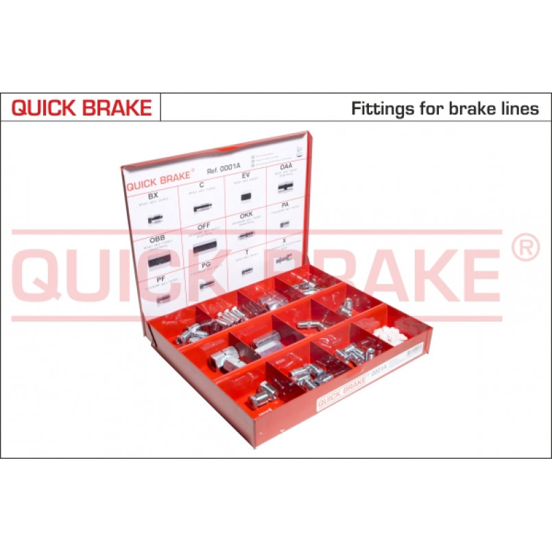 Опис: Quick Brake 0001A QUICK BRAKE Комплект фитингов и cоединителей трубок тормозных d3.0-6.5 (К-кт 45 шт.)
