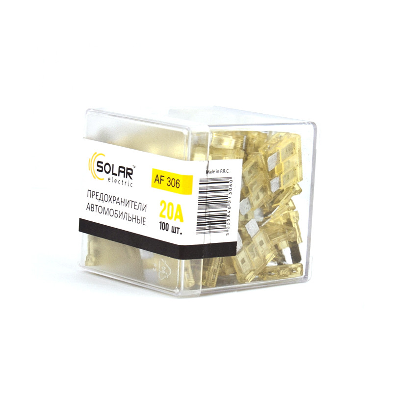 Опис: SOLAR SOLAR Набір _стандарт_ запобіжників 20А,100шт.,(100шт./уп.)