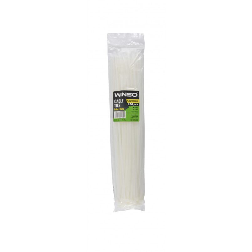 Опис: Пластикові хомути Winso широко використовуються як у виробництві, так і в побуті, але основною сферою є електротехніка. Хомути пластикові - економічний, швидкий і якісний засіб для обв’язки, кріплення, та фіксації кабелів, проводів, колісних ковпаків, рекламних банерів, та ряд інших речей. Нейлон 6,6 з якого виготовляють хомути, характерезується низьким коефіцієнтом тертя, нерозчинністю з більшістю органічних розчинників, стійкий до соленої води, слабких кислотних розчинів. Нейлон 6,6 чудово переносить високі навантаження і руйнується при температурі понад 120°С, стійкий до УФ випромінювання. Навантаження яке може витримати хомут напряму залежить від ширини стрічки хомута.