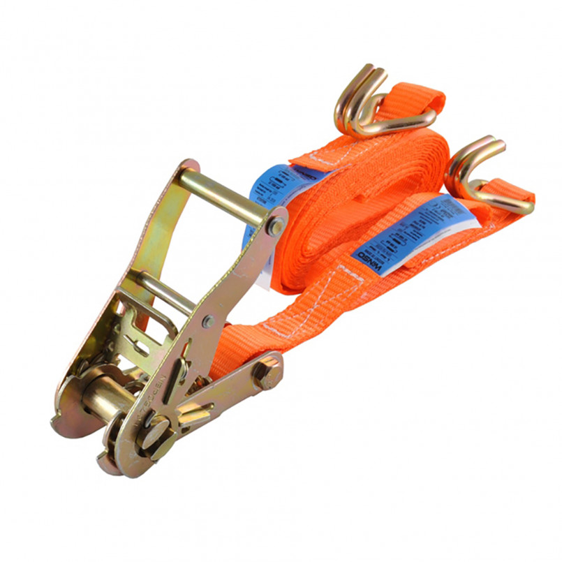 Опис: Стяжний ремінь з трищіткою та двома гаками. Призначений для фіксації вантажу під час транспортування. Довжина 6 м, максимальне навантаження 3 т.
